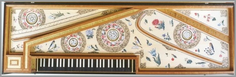 A top view of the soundboard of the 1668 Stephen Keene reproduction